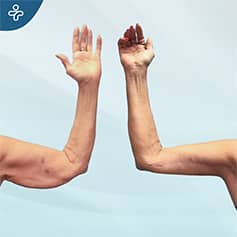 In our last example, we showcase a patient with a very advanced degree of skin sagginess. Aging and weight loss had taken a toll on her. She opted for a combined procedure, including a tummy tuck and thigh lift. We only show here her arm results. You can always contact us to receive more similar examples.