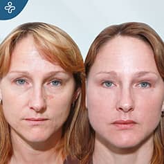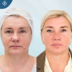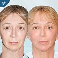 Our patient shows through another example how a combined facial aesthetics procedure can completely change your facial appearance. Wrinkles were stretched, spots were eliminated, the end-result was a much more full, younger and radiant appearance.