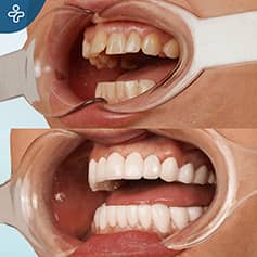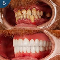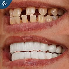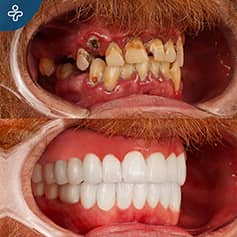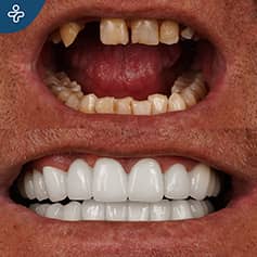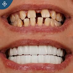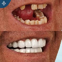 Our patient had disastrous teeth and required a full transformation, including tooth extraction, dental implants and zirconium crowns. Through orthodontics, his dental correction would have taken many years and would have been much more costly. He will never be afraid of smiling again, with full results in just 6 months with Care in Turkey.