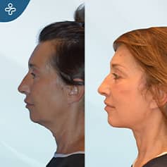 The neck lift brings standout refinement, tightening loose skin and sculpting a more defined jawline. Alongside facial lifting and a temporal brow lift, the result is a lifted, harmonious appearance with a smooth neckline that enhances the overall youthful effect.