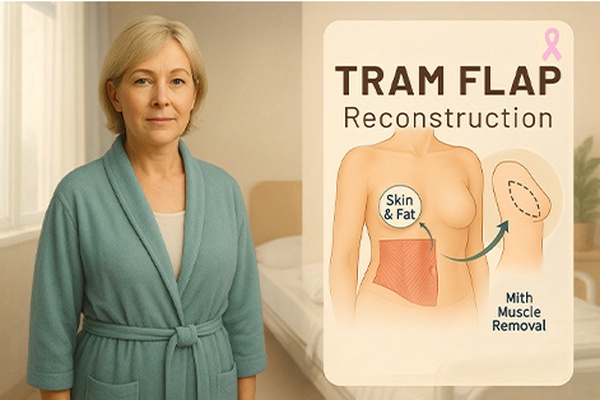 TRAM flap surgery is a type of breast reconstruction. It uses tissue from your lower abdomen to create a new breast shape after mastectomy. TRAM stands for transverse rectus abdominis myocutaneous. This means the procedure uses skin, fat, and part of the rectus abdominis muscle.
